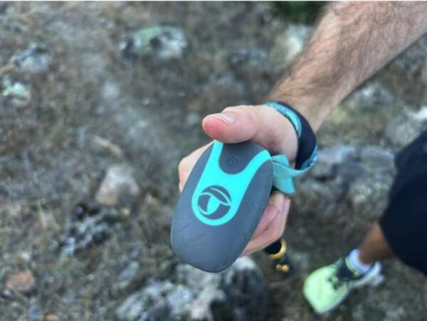 El bastón presenta un peso adecuado que equilibra robustez y ligereza. La empuñadura es cómoda y está recubierta con un material adherente y agradable al tacto. Su geometría permite un mejor enganche entre el dedo índice y medio, asegurando un agarre firme durante su uso. Además, incluye una correa que, sin ser muy larga, abraza la muñeca para evitar perder el bastón en caso de caída o tirón.