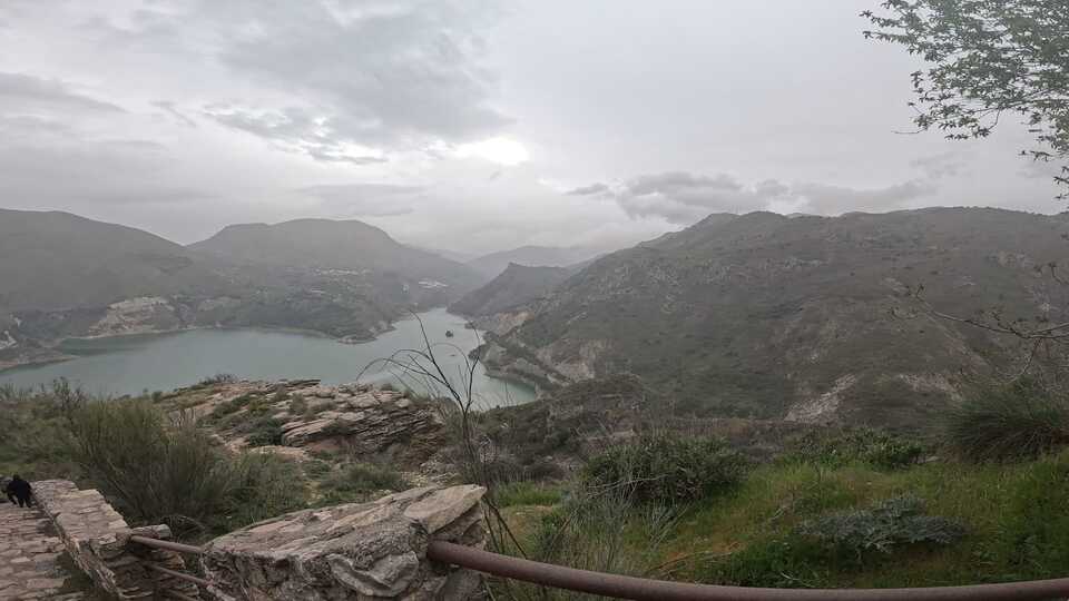 Nada mas dejar Pinos Genil comenzamos a subir en dirección al pantano de Quéntar que esta vez lo veremos desde el otro extremo , si miramos a nuestra izquierda podemos ver todo el cresteo que hemos hecho en dirección a Pinos Genil , tras una buena subida , llegamos a uno de los tramos más técnicos y peligrosos de la carrera , bajaremos hasta casi tocar el agua del embalse , un primer tramo muy técnico donde hay que estar muy atentos para no tener un mal apoyo y acabar con alguna abolladura , que a estas alturas de la carrera puede ser crucial.
